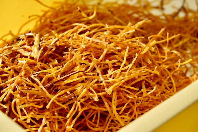 農薬・化学肥料を使わずに育てたさつまいもを、一本一本、人の手で見極め、切り、揚げ、味付けする。