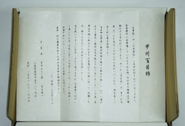 Inakakaraが今回お届けする甲州百目柿は、山梨県韮崎市の青木ぶどう園が長年培ってきた独自の技術によって仕上げられています。